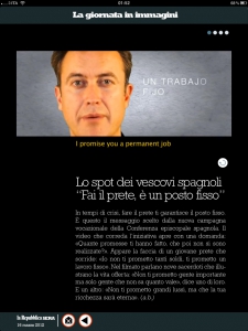 a.b., Lo spot dei vescovi spagnoli: "Fai il prete, è un posto fisso", Repubblica sera, 16-3-12 [file allegato]