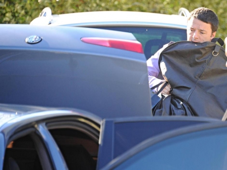 nella foto: MATTEO RENZI CHE METTE IL CADAVERE DI LETTA NEL BAGAGLIAIO