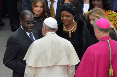 [nella foto, il Papa Bergoglio si intrattiene amabimente col dittatore Robert Mugabe]